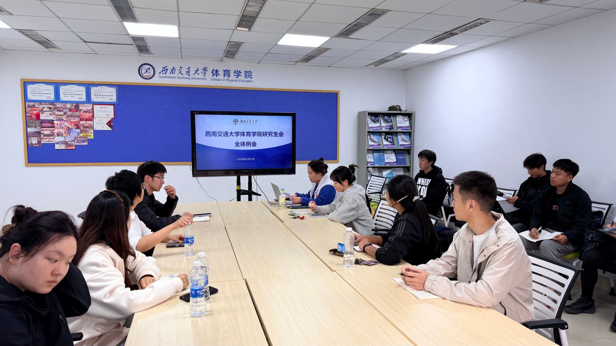 3月5日第63个学雷锋纪念日当天,西南交通大学体育学院研究生会全体例会顺利召开,学院团总支书记舒士轩、党委副书记王婉等指导老师出席,研会全体成员参会。