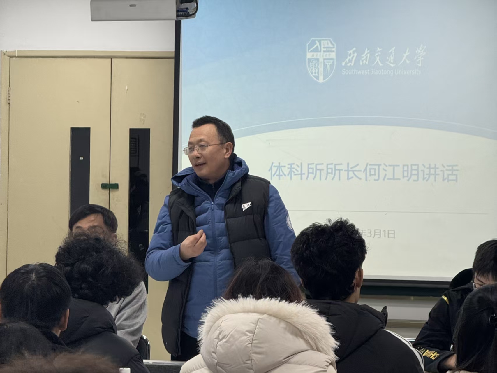 体科所所长何江明就学业发展和日常管理提出要求。他提醒同学们重视课程学习,把论文质量放在第一位,同时要提前考虑就业问题,早做准备、主动谋划。